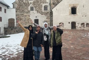 On 20th of April 2024, it was a snowy day in Turku and also a free-time day for us. The road was covered by snow, and everyone gathered to come inside and outside the hotel to warm up their bodies, and then go back outside to take a memorable picture in the snow—as we all did too. In furtherance activities of 20th of April 2024, half of UI’s students were facing a midterm examination during their breakfast. After that, some went to Turku Castle and Turku City Center, while others stayed in hotels.